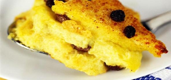 2. Place the bread and raisins in a basin and pour in the milk mixture.
