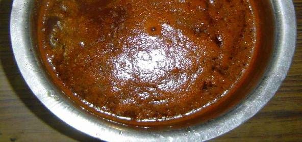 - Squeeze out the juice from the tamarind. Add it to the beetroot pulp. Put on a slow fire.