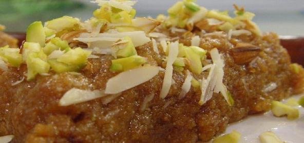 1. Roast besan and wheat flour separately, using 1.5 tsp ghee for each flour.