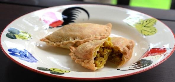 8. Fold in a semi-circle and stick firmly by pressing on the sides or giving a curved roll on the sides so that the stuffing doesn’t come out.