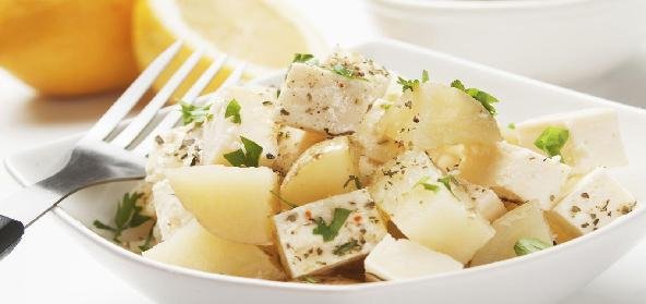 - Add the mayonnaise and mustard mixture and toss carefully so as not to break the potatoes.