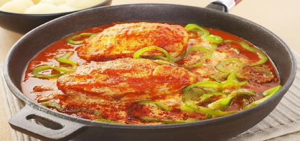 - Add salt, turmeric powder and the chicken strips and give a quick stir until the chicken turns white (2-3 minutes).