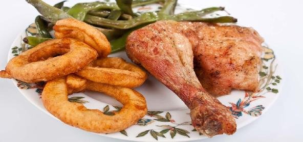 6. This can be eaten with fried rice along with onion rings and lemon.