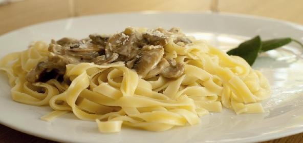- When the tagliatelle is cooked, add it to the stock mixture and toss the sauce well.