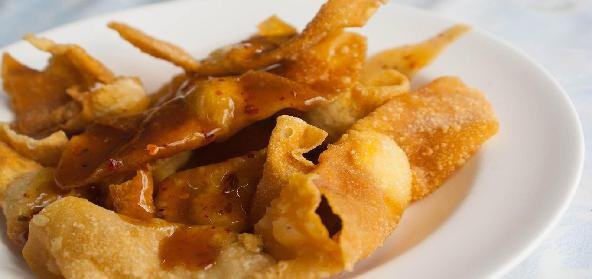 7. Put the fried dumplings into the pan and add soya and chilli sauce.