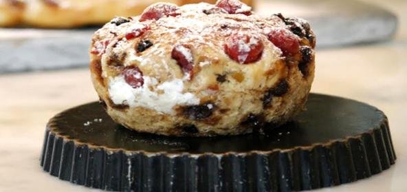 - Combine butter and remaining flour until crumbly. Slowly pour in egg mixture and beat on high speed 3 to 4 minutes, until dough is elastic looking and long strands form. Beat in fruit and zests