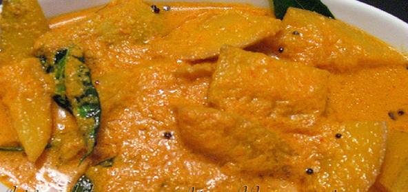 - Dry roast sesame seeds, red chillies, coconut, paprika and enough water to a smooth paste and add the masala to the cooked mangoes and boil well.