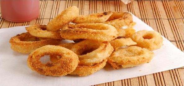 7. Meanwhile, drain, pat rings dry on a thick kitchen towel.