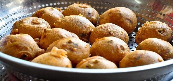 - Take the ladle full of batter and put them in oil. (You can also use hands to drop the bondas in to oil)