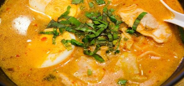 - Remove the yolk from the centre and mix with the curry.