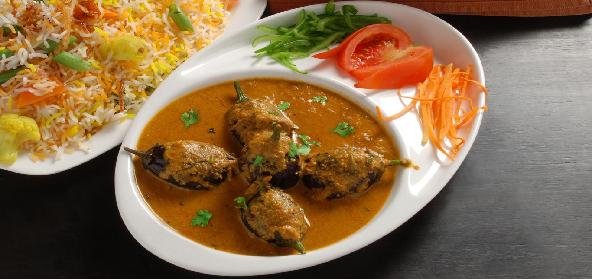 6. Meanwhile, slit brinjal into 4 pieces, leaving it attached at the stem.