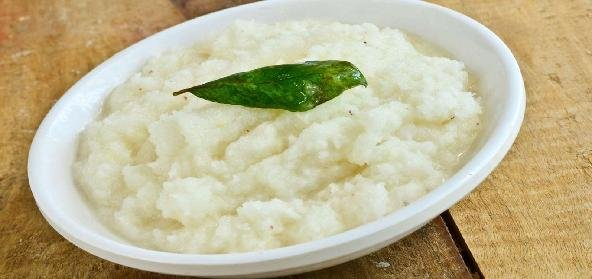 1. Grind coconut, garlic flakes, tamarind and salt to a coarse paste