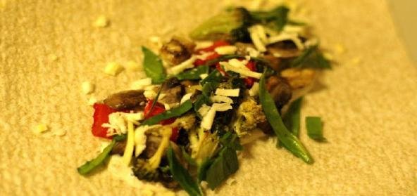 - Spoon half of the salad mixture onto the lower third of the wrap. (Make sure the filling does not reach the edge of the wrap. )