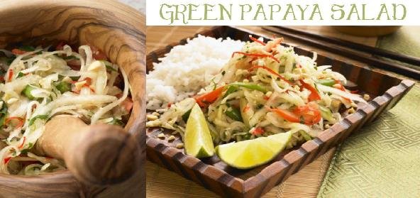 • 1/2 green Papaya – finely shredded into long strands and soaked in ice cold water