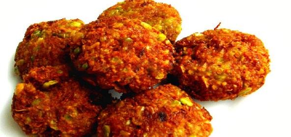 - Heat the oil for deep-frying, take a small golf ball size vada batter and flatten them with palms, drop gently into the hot oil and fry until they turn golden brown and crispy. Drain the excess of oil with paper towel.