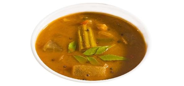 - First boil tur dal with tomato. Chop and boil drumstick, brinjal and bottle gourd in some water. Shallow fry the following ingredients for 1 minute – coriander seeds, cumin seeds, dry coconut, sugar, whole red chillies, black pepper – and powder.