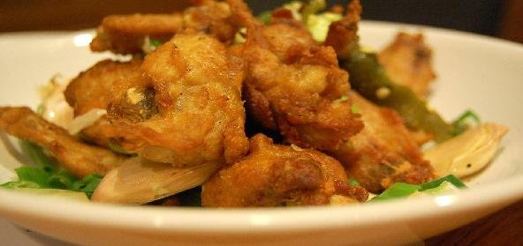 - Cut off tips, and separate each wing at the joint. In a large skillet deep fry chicken wings in oil for 10 minutes or until the wings are golden brown and crisp, remove them and drain well. Drain the oil.