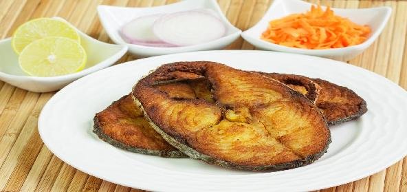- Heat oil in a suitable pan and shallow fry the fish till done.
