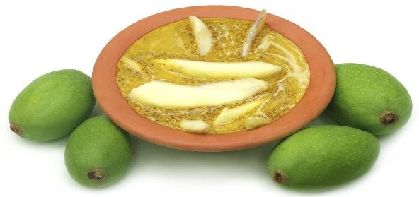 - Quickly add curry leaves and saute for a few seconds more and then combine with mango-coconut mixture.