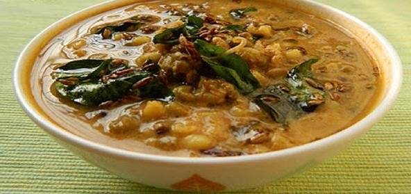- Wash sprouted lentils carefully, pour enough water to cover the sprouts, add green chilli and pressure cook till 1 whistle on high heat.