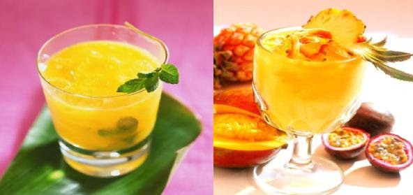 1. Crush the pineapple and mango slices and mix with the pineapple juice in a large jug.