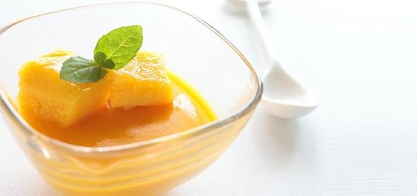 - Stir and mix well mango puree, ice water, milk, whipping cream and instant coconut powder.