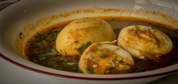 - Add garam masala and shelled and halved hard-boiled eggs.