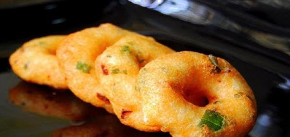 - Meanwhile, heat oil in a kadai. Wet your right hand, make a small ball with the batter, use your thumb to make a hole in the middle and drop it in the oil.