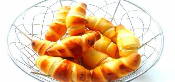 11. Preheat the oven to 350F, beat the egg yolk for brushing with 2 tablespoons of water and brush the rolled crescent rolls.
