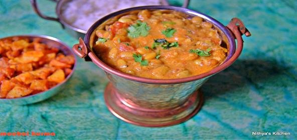 1. Soak mochai/field beans over night. In the morning, pressure cook it for 3 whistles.