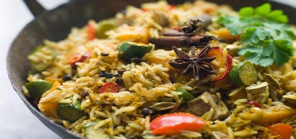 - In a pressure cooker, heat the oil and ghee, fry ground masala and the onion till golden brown. To this add all other ingredients, mushrooms and stir for 10 mins.