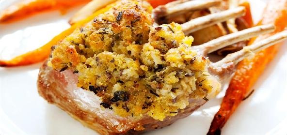 - Arrange the grilled vegetables and lamb chops in a plate.