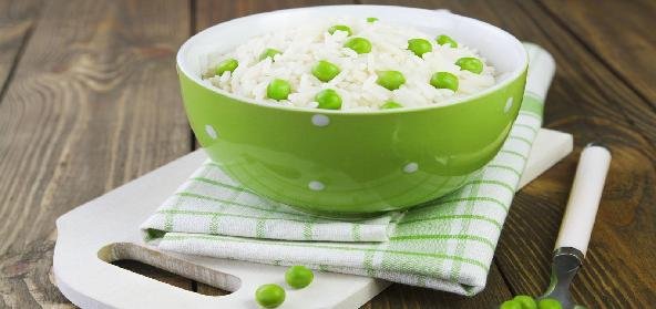 2. Now add the washed rice and peas, and heat for 2 mins.
