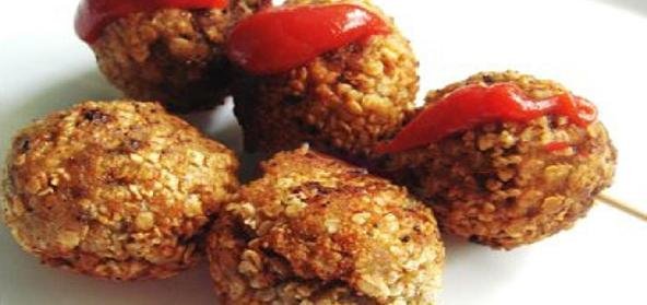 - Make a paste with corn flour and water, drop the balls in the corn flour paste and roll immediately in rolled oats.
