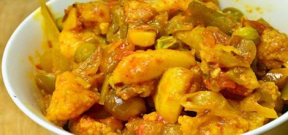 - Add the vegetables, chilli powder, turmeric powder, salt and 2 glasses of water. Cook the vegetables for 10 mins.