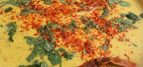 - Add the butter milk, take precaution not to boil. Grind the coconut, green chillies and add it with the butter milk mixture.