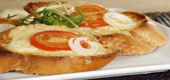 - Place the bread slices in the oven and toast at 150 degree C till the cheese melts and the bread is toasted.