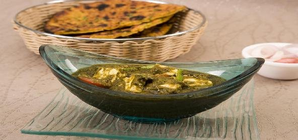 6. Add jeera powder, dhania powder, tomato pulp stir well. Now add palak pulp, salt and cover and cook for 7-10 mins. Turn off the flame and add paneer pieces and garnish with cream.