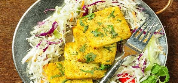 - Slice the paneer or tofu.