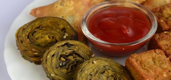 6. Then fold on sides to the middle of the vein and roll like Swiss roll. Similarly prepare rolls with all the leaves.
