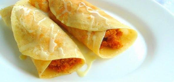 7. Place the prepared filling in the middle and bring the edges of the crepe to the centre.