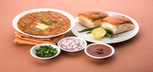 - Heat a tsp of butter in a hot pan, cut the pav as two pieces and toast the pav with the hot butter, serve along with onion and coriander leaves garnished pav bhaji.