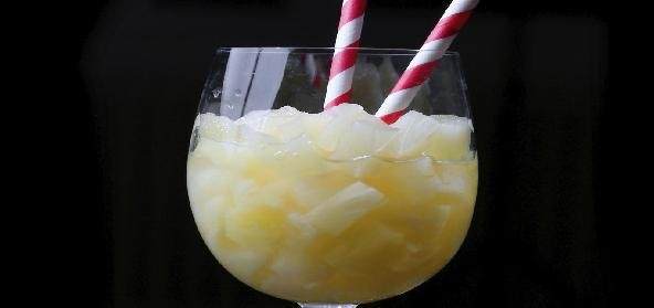 1. Mix coconut water, juice, cream and rings or sticks of pineapple till the glasses are full, add soda and sprinkle masala.