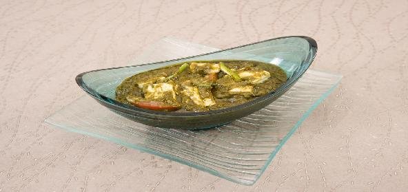 - Discard stems of palak leaves. Pressure cook with 1/4 cup water till one whistle.
