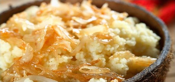2. Add poha into the bowl and mash the cantaloupe with your hand until the cantaloupe is completely mashed and the poha is soaked.