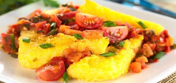 - Just before taking off fire, add in pieces of polenta. Stir.