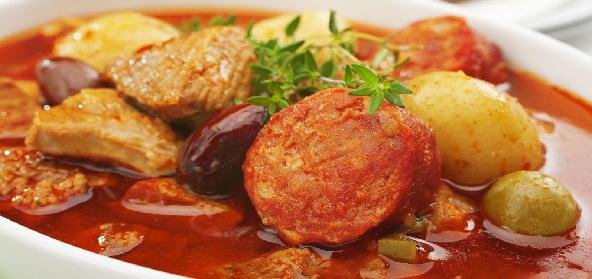 - Add the potatoes, salt and sufficient water and cook it on simmer or low heat till the pork and potatoes are tender.