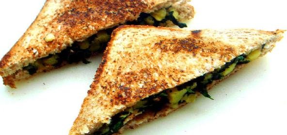 - Toast the bread slices, spread gently the already prepared potato-spinach mixture to a toasted bread slice and cover it with another bread slice.