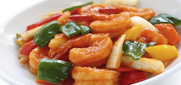 1. In a bowl, marinate prawns along with green chilli sauce, ginger garlic paste, corn flour, barbeque sauce, black pepper powder, soy sauce and vinegar for about 30 mins.