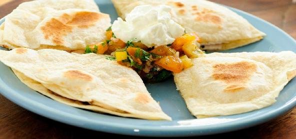 6. Fold over and serve with salsa.